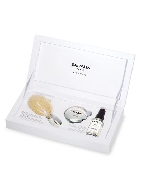 Premium haircare set with handmade chromium coated spa brush with boar hair bristles. The unique structure of the boar hair bristles carries the hair’s natural oils from the scalp to the end of the hair shaft. By coating each strand with a very small amount of sebum, the brush repairs dry hair and adds lustrous shine without using styling products. Boar hair and nylon bristles. Imported.