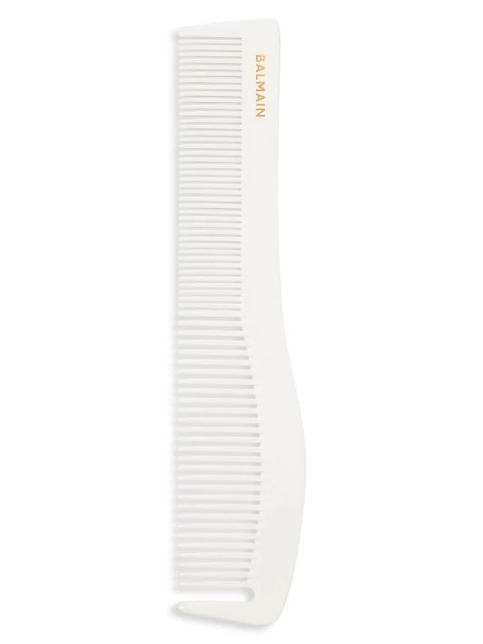 From the Standard Collection. Large, hand carved and polished professional comb for comfortable cutting and styling. Shaped with straight edges to assist in a clean cut and a special tooth to easily section the hair. Designed with a black and white two-color surface to easily work in any hair color. Made of durable, cellulose acetate with anti-static properties. The Cutting comb is hand polished to ensure that the teeth are smooth and free from sharp edges and imperfections to prevent damage and spit ends. Cellulose Acetate. Made in Italy.