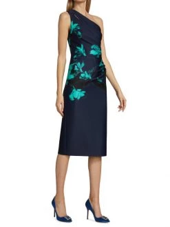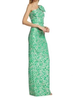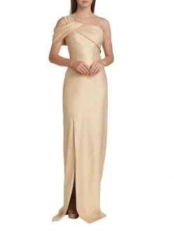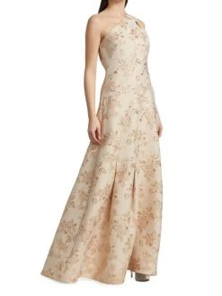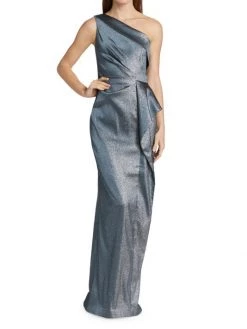 Teri Jon By Rickie Freeman One-Shoulder Metallic Ruffle Dress