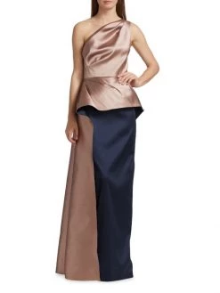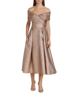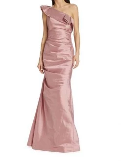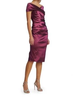 Teri Jon By Rickie Freeman Off-The-Shoulder Ruched Satin Gown