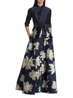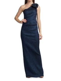 Teri Jon By Rickie Freeman Scuba Gown Chiffon Overlay Dress Navy