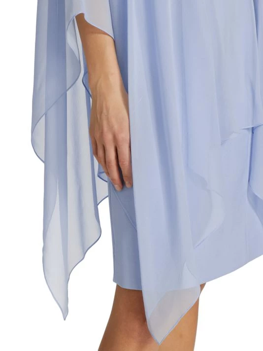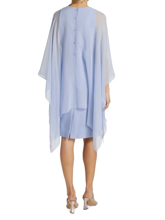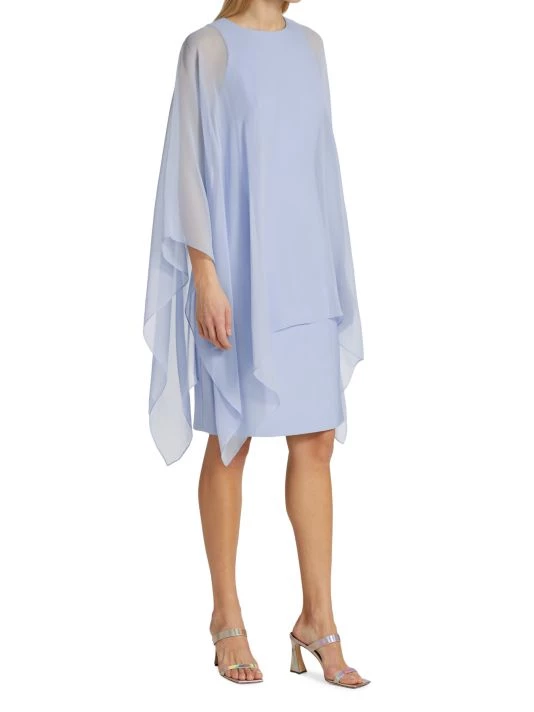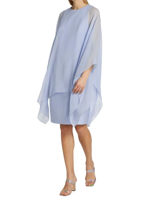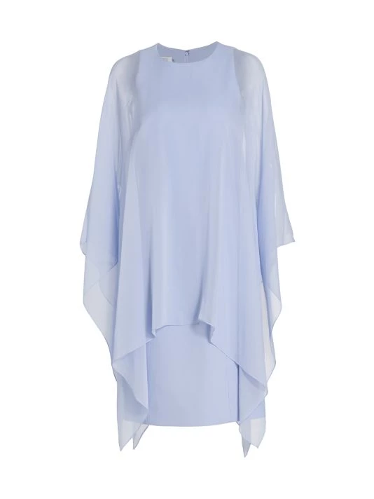 Whispy fabric drapes softly over this shift-style silhouette dress, cut with a jewel neck and long flowing sleeves.