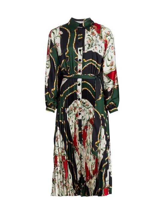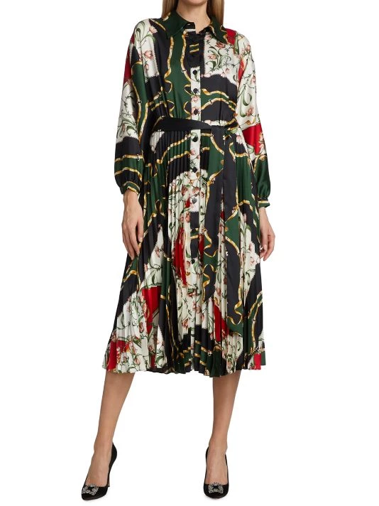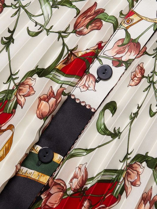 This A-line dress is made of printed fabric with a flowy pleated skirt.